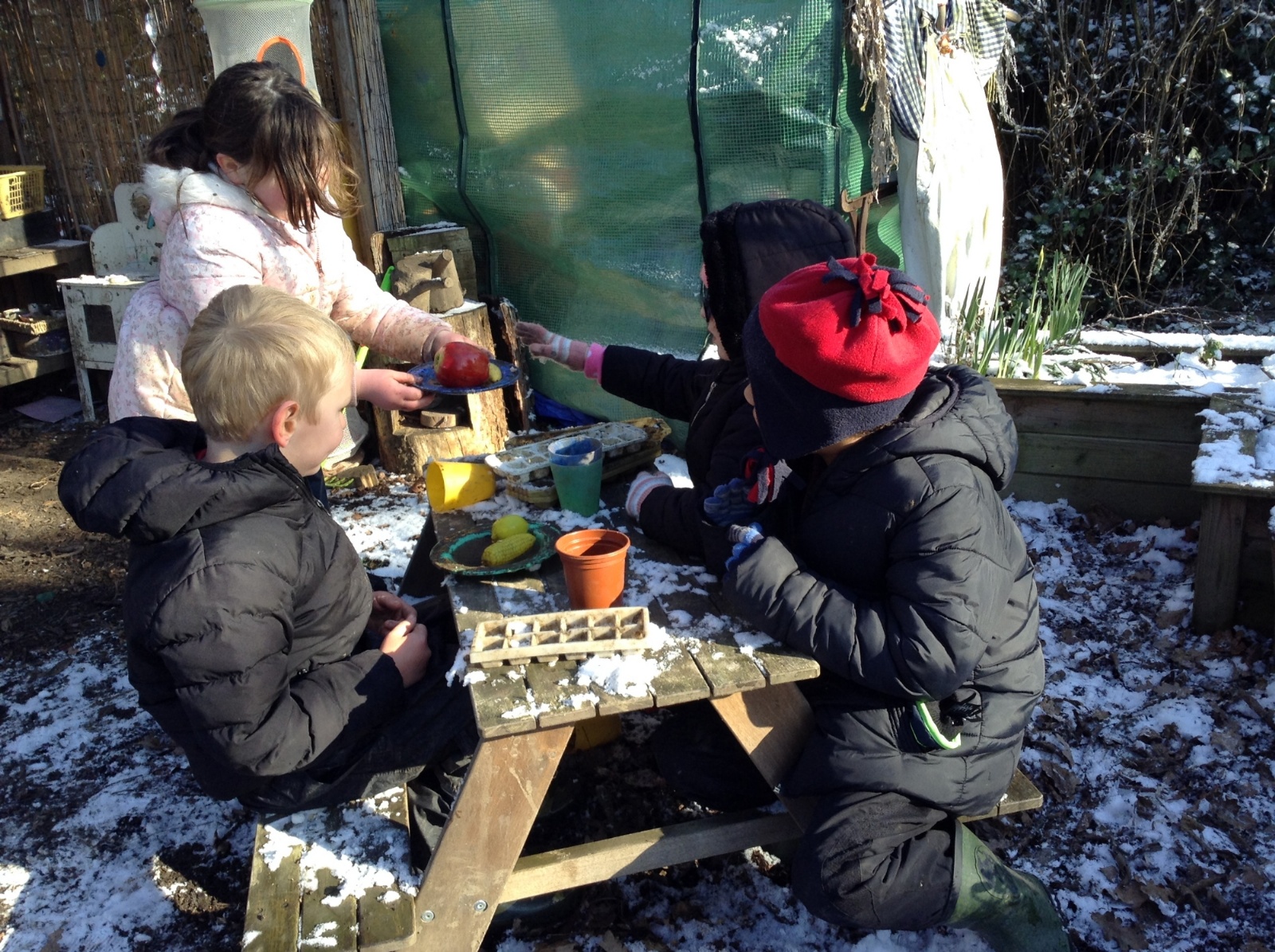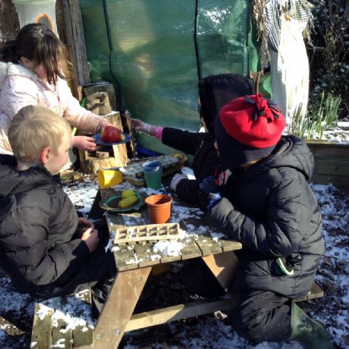 Key Stage 1 Dragonflies fun in the garden on a snowy Tuesday!